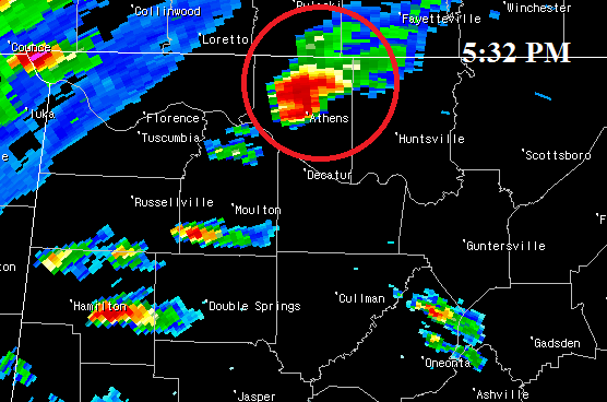 | Birmingham NEXRAD, 5:42 p.m., when Madison County Warning was issued |