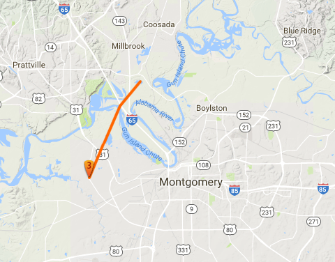 The map below from TornadoHistoryProject.com shows the path of the Montgomery tornado.