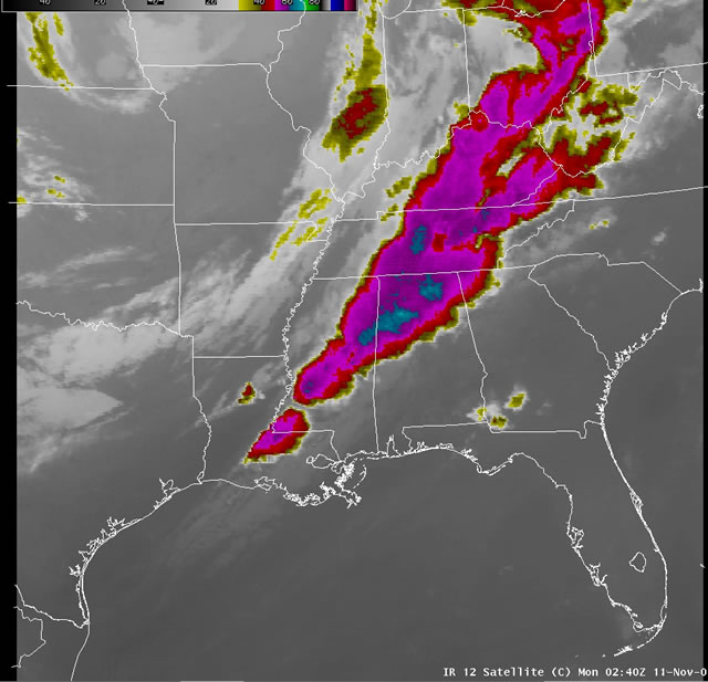 | 8:40 p.m. Infrared Satellite Image 11/10/02 during Saragossa F3, NWS Bmx |